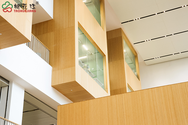信陽學(xué)院南湖校區(qū)位于河南省信陽市南灣湖風(fēng)景區(qū)科教園區(qū),占地面積約1300畝,建筑面積約69萬平方米。項目中,從教學(xué)樓的裝飾,到圖書館和學(xué)生休閑區(qū)的打造,充分發(fā)揮了桃花江任意竹?的特質(zhì),將竹材的天然美學(xué)與科技工藝融入室內(nèi)空間,以地板、墻板、扶手等為載體,詮釋了“竹文化”,打造出兼具文化厚度與功能硬度的綠色空間。這種清新自然,環(huán)保舒適的生活學(xué)習(xí)環(huán)境,既充滿人文關(guān)懷,又不失創(chuàng)新精神,完美契合了校區(qū)的設(shè)計理念:“崇尚自然、追求卓越、引領(lǐng)創(chuàng)新的山水校園,創(chuàng)建生活學(xué)習(xí)一體化社區(qū),創(chuàng)造領(lǐng)先靈活的學(xué)習(xí)環(huán)境”。......